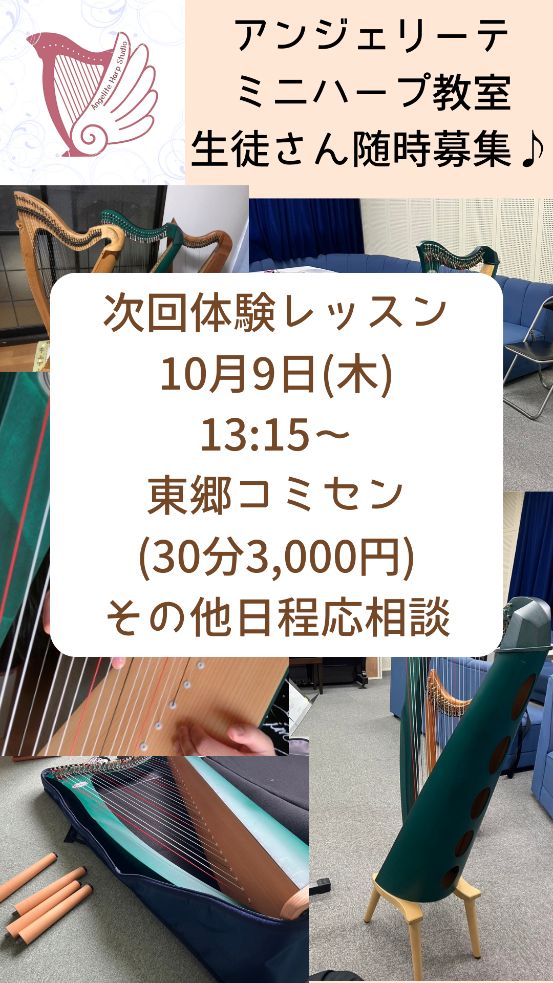 11月13日体験枠あります・アンジェリーテミニハープ教室の体験レッスン 2025.10.19 この記事は約1分で読めます。 みなさまこんにちは、音と神託の紡ぎ手さゆらです。 ミニハープ教室の体験レッスン可能日をお知らせします。 11月13日(木) 13:15〜 の1枠が空いています。 他日程ご希望の方は別日程で赤間コミセンにて対応可能です。お気軽にお問い合わせくださいませ♪ 準備があるため事前のお申込み・ご予約が必要です。 ご予約・お問い合わせなどはお問い合わせまたは、LINE公式からお願いしますね(^^) Tweet