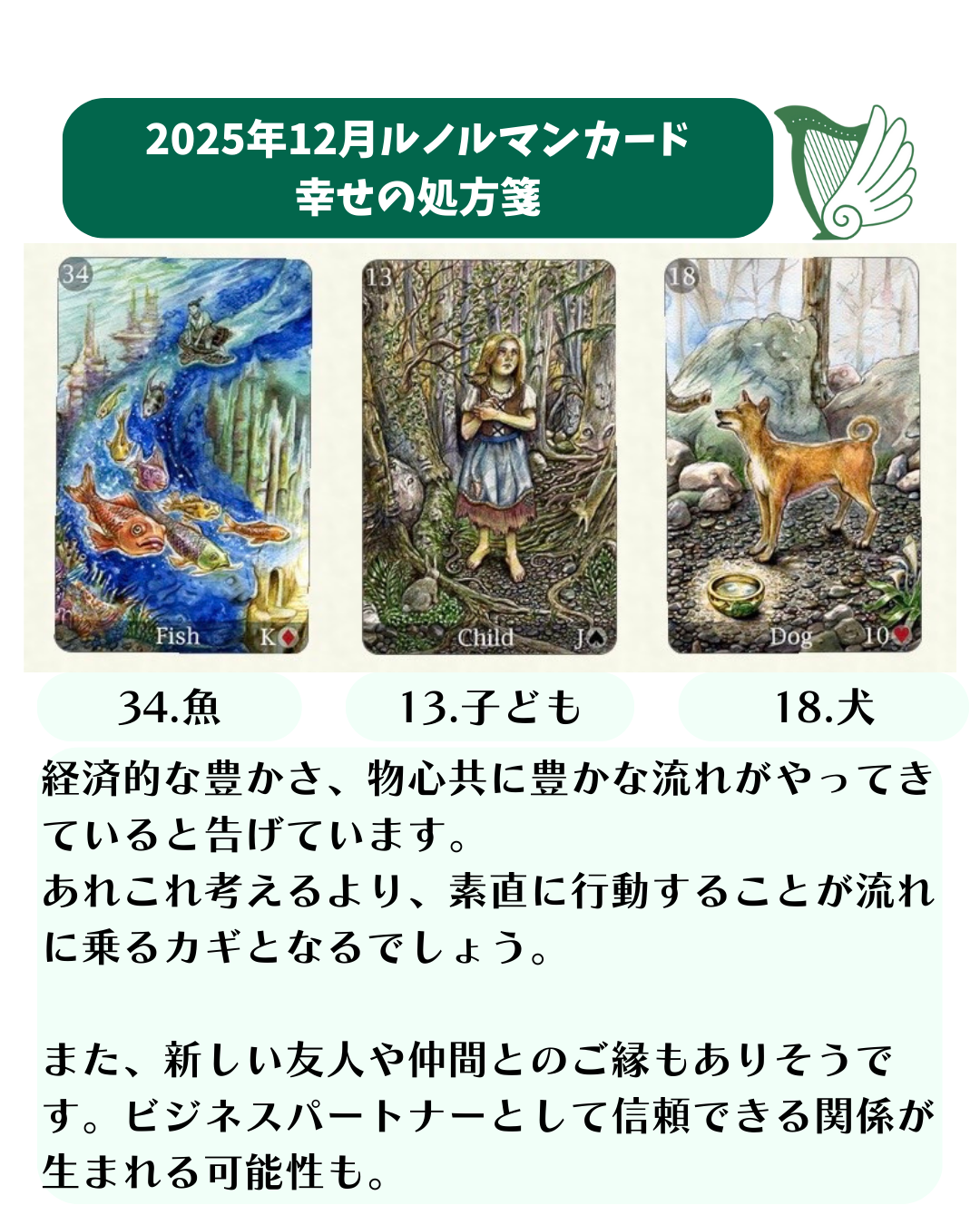 12月、今年もあと1ヶ月ですね。振り返ると今年も色んな事があり、転機となる出来事もあり、学びと気づきがたくさんでした。12月、最後の締めくくりの今月は一体何があるのだろう、と思いつつ、12月のルノルマンカード、毎月の幸せのテーマをお届けします。